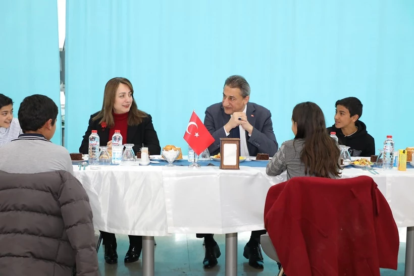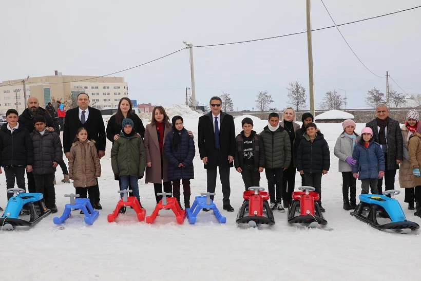 Burada karın ve kızakla kaymanın tadını çıkaran öğrencileri, Vali Karaömeroğlu ve eşi Filiz Karaömeroğlu da bu eğlenceli anlarında onları yalnız bırakmadı.