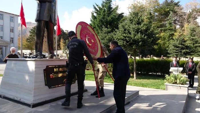Tatvan Kaymakamlığı bahçesinde bulunan Atatürk büstüne çelenk bırakılması ile başlayan tören saygı duruşunda bulunulması ve İstiklal Marşı’nın okunmasıyla sona erdi.