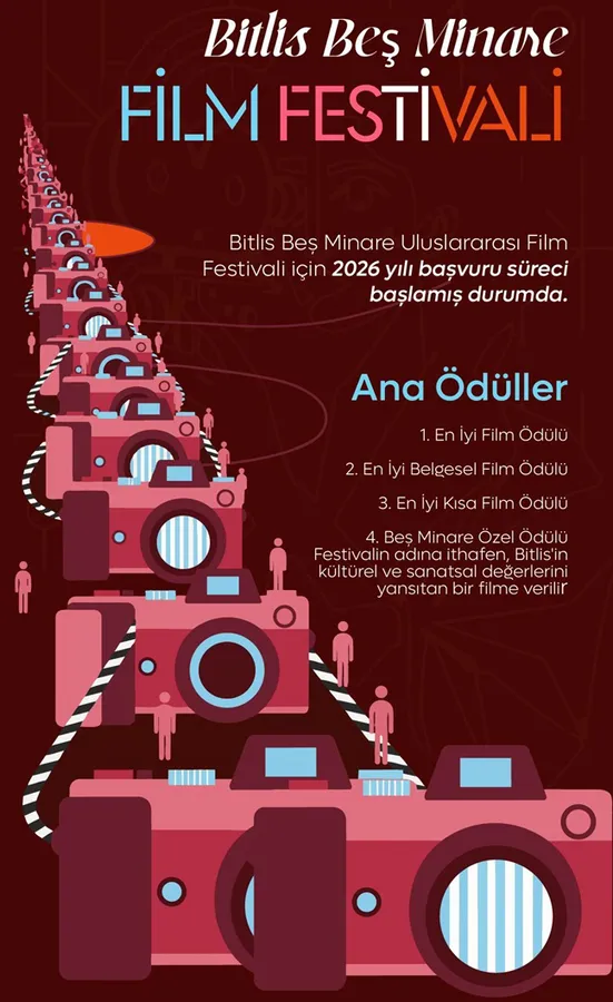 Festival kapsamında En İyi Film, En İyi Belgesel Film, En İyi Kısa Film ve Bitlis’in kültürel ve sanatsal değerlerini yansıtan yapımlara verilen Beş Minare Özel Ödülü sahiplerini bulacak. Festivalin, Bitlis’in tarihi ve kültürel kimliğinin sinema yoluyla tanıtımına önemli katkı sunduğunu vurgulayan Çelik, farklı ülkelerden yönetmen ve yapımcıları Bitlis’te ağırlamaktan memnuniyet duyacaklarını ifade etti.