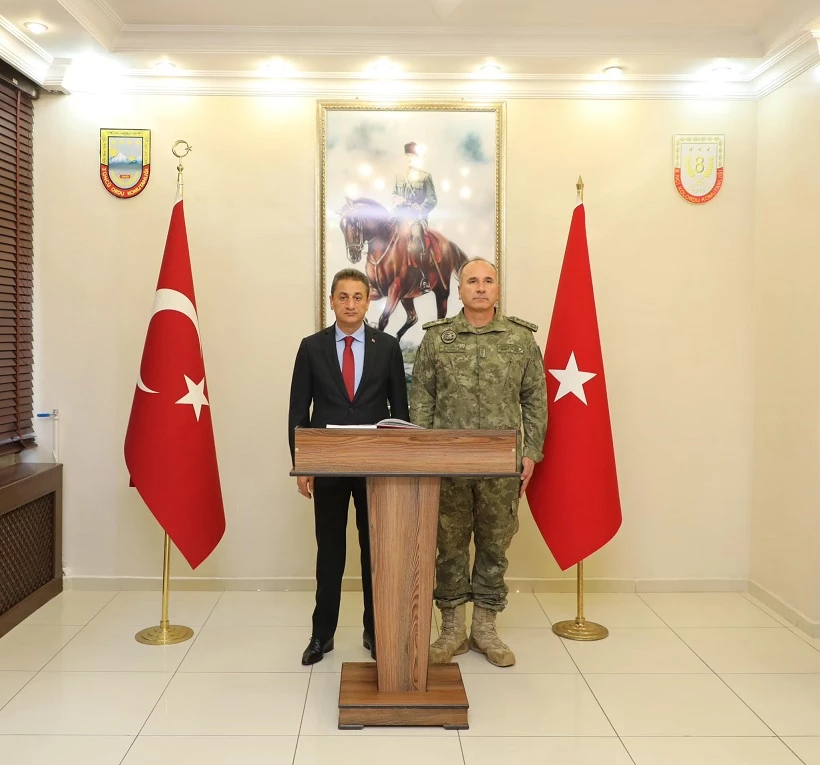 Tugay Komutan Vekili Piyade Albay Haşim Bildiş'i ziyaret eden Vali Karaömeroğlu, Komutanlık Şeref Defteri'ni imzaladı.