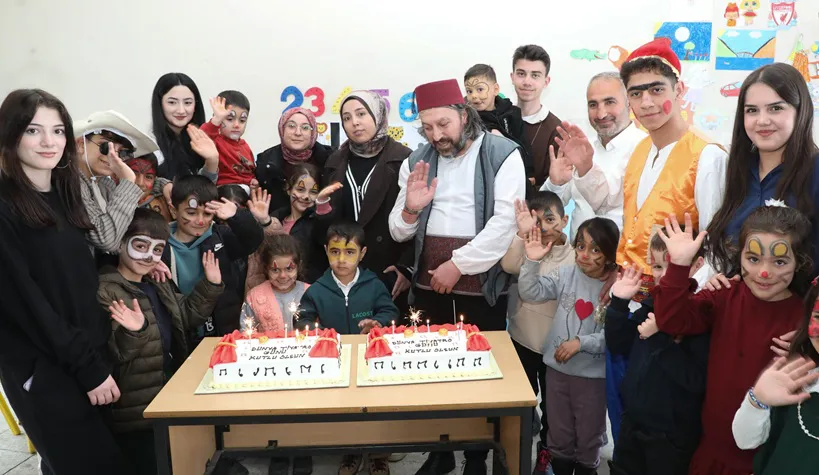 Etkinlik sonunda çocuklarla birlikte pasta kesilerek Dünya Tiyatro Günü coşkusu paylaşıldı.