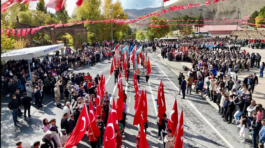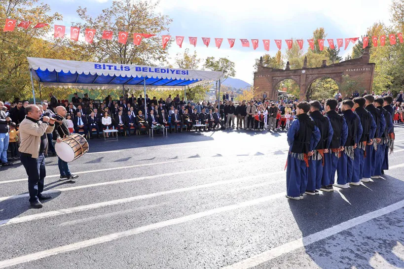 Bitlis’teki kutlama programı, Gökmeydan’da gerçekleştirilen törenle başladı. Bitlis Valisi Ahmet Karakaya, Bitlis Garnizon Komutanı Tuğgeneral Tahir Kılıç ve Bitlis Belediye Başkanı Nesrullah Tanğlay birlikte tören birliklerinin ve vatandaşların bayramını kutladı.Tören, Saygı Duruşu ve İstiklal Marşı’nın okunmasıyla devam etti. Ardından, Cumhurbaşkanı Recep Tayyip Erdoğan’ın 29 Ekim Cumhuriyet Bayramı dolayısıyla yayımladığı mesaj okundu.