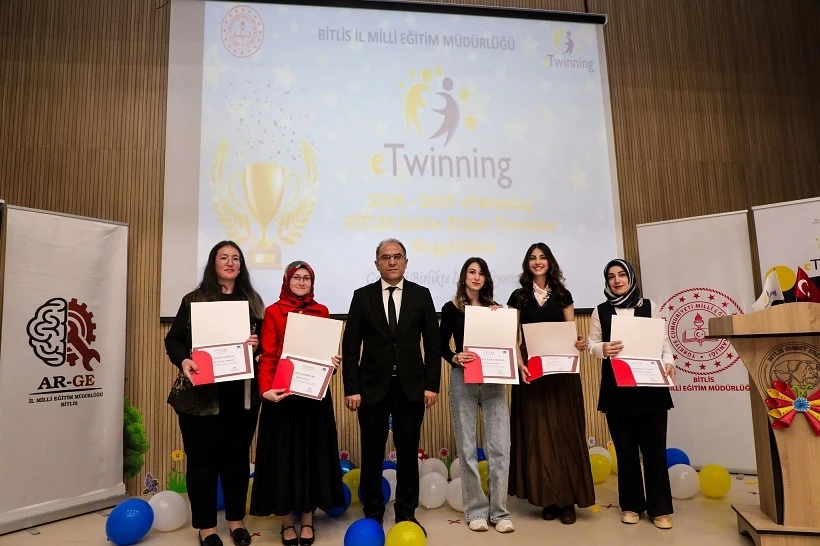 Bitlis'te Avrupa'nın en büyük okul ağı olan eTwinning platformunda üstün başarı gösteren öğretmen ve okullar, Ahmet Eren Bilim ve Sanat Merkezi'nde düzenlenen bir törenle ödüllendirildi.