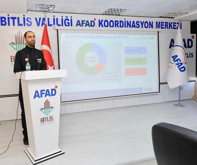 Toplantıda ayrıca, ilçelerden iletilen veriler ışığında sığınak tespit çalışmaları ve gelecek döneme ilişkin planlamalar görüşüldü.Toplantıya; Bitlis Belediye Başkanı Nesrullah Tanğlay, Vali Yardımcısı Alay Yazıcı, İlçe Kaymakamlarımız, İlçe Belediye Başkanları, İl Özel İdaresi Genel Sekreteri Adem Aydoğdu, AFAD İl Müdürü Kerem Oruk, Bitlis Eren Üniversitesi Temsilcisi Doç. Dr. Fatih Adıgüzel, ilgili kurum müdürleri ve birim amirleri katıldı.