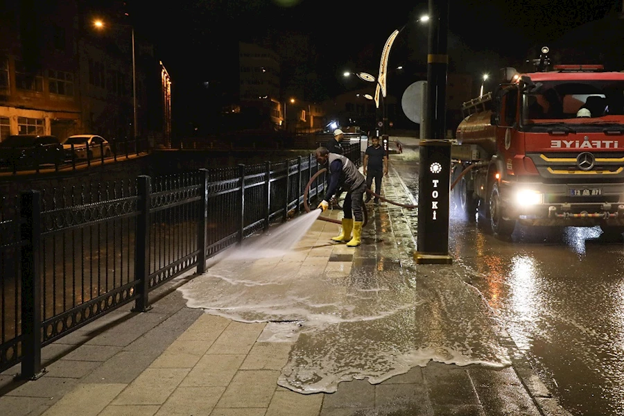 Temiz ve sağlıklı bir çevre için çalışmalarını sürdüren Bitlis Belediyesi, çarşı merkezinde yol ve kaldırım temizliği yaparak vatandaşlara daha temiz bir yaşam alanı sunuyor. Gece geç saatlere kadar devam eden temizlik çalışmaları kapsamında, ekipler ana caddelerdeki kaldırımları ve yolları tazyikli su ile yıkayarak temizledi.