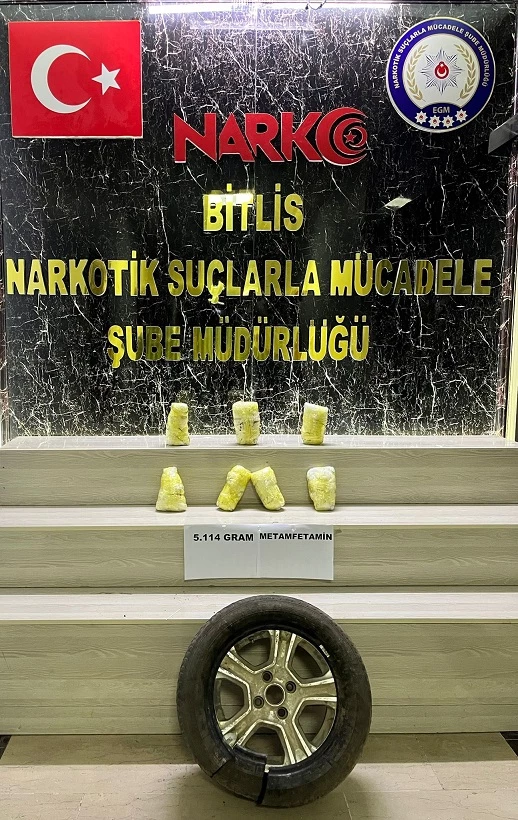 Bitlis Valiliğinden yapılan açıklamada, “Bitlis İl Emniyet Müdürlüğü Narkotik Suçlarla Mücadele ekiplerimiz tarafından Bitlis Merkez’de durdurulan bir araçta, Narkotik Dedektör Köpeği “Gill” ile yapılan aramada, aracın lastiğine gizlenmiş 5 kilo 114 gram metamfetamin maddesi ele geçirilmiştir. Olayla ilgili olarak Uyuşturucu Madde Ticareti Yapma suçundan gözaltına alınan 2şüpheli, 28 Ocak 2025 tarihinde çıkarıldıkları adli makamlarca tutuklanarak cezaevine gönderilmiştir. Hemşehrilerimizin huzur ve güvenliği için uyuşturucu madde imalatı, kaçakçılığı ve kullanımına karşı yürüttüğümüz kararlı mücadele aralıksız devam edecektir.” denildi.