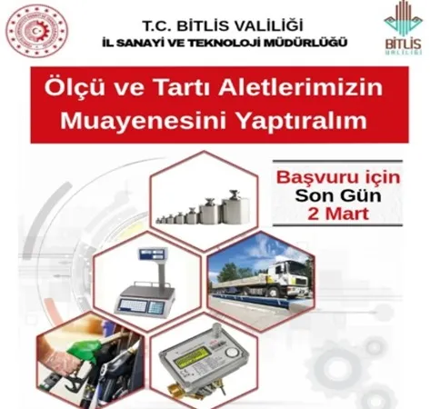Bitlis İl Sanayi ve Teknoloji Müdürlüğü, 3516 sayılı Ölçüler ve Ayar Kanunu kapsamında ticarette kullanılan ölçü, sayaç ve tartı aletlerinin periyodik muayenelerinin yasal zorunluluk olduğunu hatırlatarak, adil ticaret ve tüketici haklarının korunması için vatandaşlar ile işletmeleri uyardı.