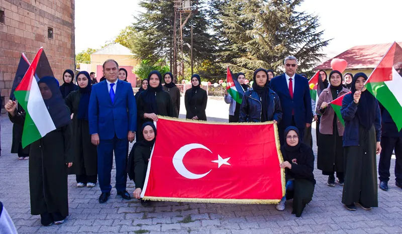 Tatvan’daki etkinlikte kısa film gösterimi ve dua programı yer alırken; Hatuniye Kız Anadolu İmam Hatip Lisesi’nde ise öğrenciler tarafından duygu dolu şiirler okundu, anlam yüklü koreografi gösterileri sahnelendi. Etkinlikte Filistin ve Türkiye bayraklarının renkleriyle süslenen balonlar gökyüzüne bırakılarak barış ve kardeşlik mesajı verildi.