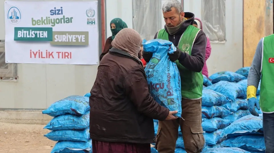 Bitlis İnsani Yardım Derneği (İHH) ile yürütülen çalışma kapsamında, Halep’teki ihtiyaç sahibi ailelere kömür ulaştırıldı.