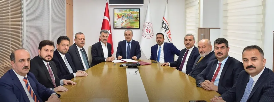 Güroymak Belediye Başkanı Eşref Mutlu, Spor Toto Teşkilat Başkanlığı’nda ilçeye kazandırılacak yarı olimpik yüzme havuzu ile 3 adet semt sahasının yapımı için protokol imzaladı.