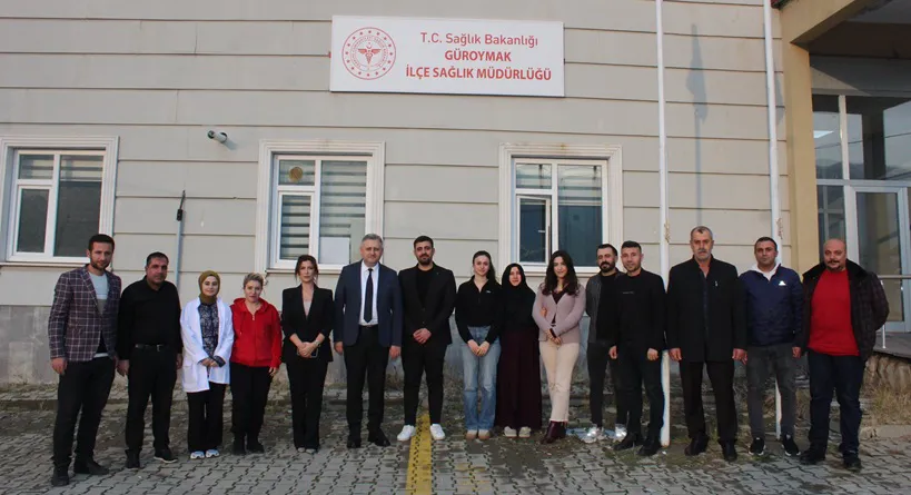 Bitlis İl Sağlık Müdürü Doç. Dr. Şaban Ergene, Halk Sağlığı Hizmetleri Başkanı Uzm. Dr. Seda Yılmazer ve Kamu Hastaneleri Hizmetleri Başkan Yardımcısı Emrah Teyfik Şölen, Güroymak Devlet Hastanesi ile Güroymak İlçe Sağlık Müdürlüğü’nü ziyaret etti.