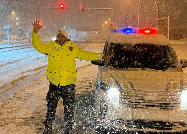 Karla kaplanan yollarda, kent merkezi ve sorumluluk bölgelerinde çalışmalarını sürdüren emniyet ekipleri; trafik güvenliğinin sağlanması, asayişin korunması ve olası olumsuzluklara anında müdahale edilmesi amacıyla 7 gün 24 saat esasına göre görev yapıyor.