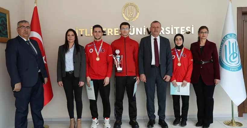 Rektörlük makamında gerçekleşen ziyarette, şampiyon sporcular Rektör Elmastaş tarafından tebrik edilerek başarılarından dolayı Başarı Belgesi ile ödüllendirildi.