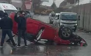 Direksiyon hâkimiyetini kaybeden bir araç metrelerce yükseklikten şarampole yuvarlanırken, o anlar sanayi bölgesindeki bir işyerinin güvenlik kamerasına saniye saniye yansıdı.