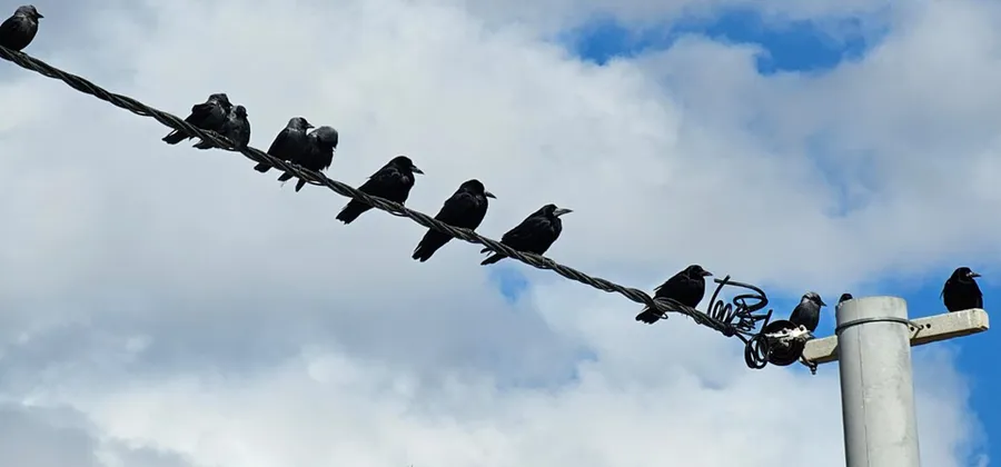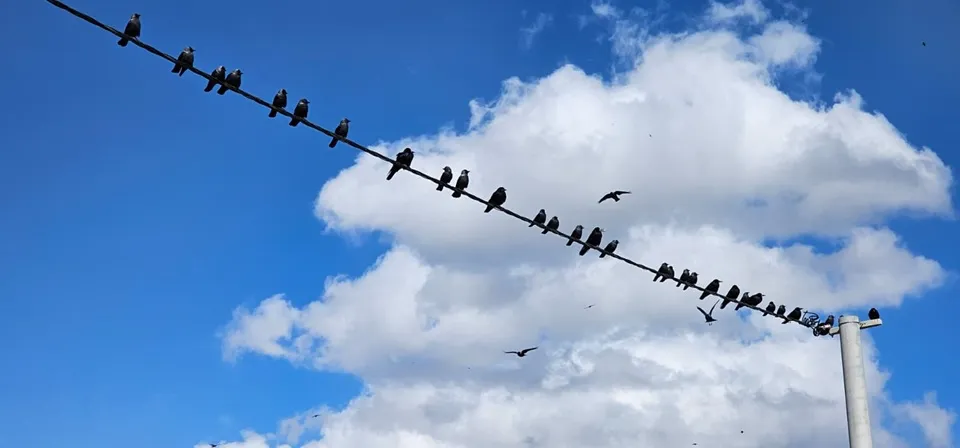 Günün erken saatlerinde çekilen görüntülerde, tel boyunca dizilen kuşların arasında bir kuşun kanat çırparak havalanması dikkat çekti. Bulutların arasından süzülen kuş siluetleri, gökyüzünde görsel bir şölen sundu.