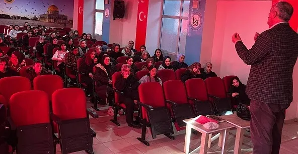 Gençlerin milli ve manevi değerlerle yetişmesine katkı sunmak amacıyla gerçekleştirilen program, Tatvan Kız Anadolu İmam Hatip Lisesi konferans salonunda yoğun katılımla gerçekleştirildi. Öğrencilerin ilgiyle takip ettiği etkinlikte, aile kurumunun İslam’daki yeri ve anne-babaya saygının önemi ele alındı.