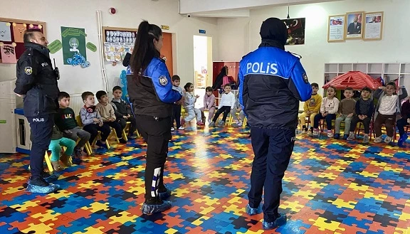 Tatvan’daki okul ziyaretleri kapsamında, Merkez Prof. Dr. Fuat Sezgin Lisesi, Karataş İlkokulu, İstasyon İlkokulu ve Fatih Anaokulu’nu ziyaret eden polis memurları öğrencilere trafik kurallarını doğru bir şekilde öğrenmeleri, trafikte nasıl güvenli hareket etmeleri gerektiği ve genel güvenlik önlemleri hakkında detaylı bilgiler verdi. Ayrıca, polislik mesleğinin çeşitli yönleri hakkında öğrencilerle sohbet edilerek, polislerin toplumla kurduğu bağın önemi vurgulandı.
