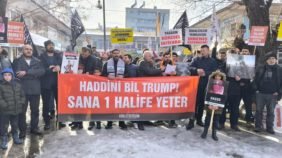 Grup adına basın açıklamasını okuyan Köklü Değişim üyesi Sidar Yoldaş, Trump’ın Gazze'yi tamamen boşaltma ve bölgeyi turizm cennetine dönüştürme planlarını kınadıklarını belirterek, “Gazze'deki bütün binaları yıkmak istediğini, körfez ülkelerinin paralarıyla Gazze'yi turizm cennetine çevireceğini Gazzelilerin Mısır ve Ürdün'den geri dönmeyeceklerini söyledi. Küstah daha da ileri gitti, (bugün için saat verdi) ve esirlerin tamamı bırakılmazsa kıyametin kopacağını söyledi. Küstah Trump yemin edip göreve geldiği günden beri bu yönde açıklamalar yaparak ateşle oynuyor. Kendine kul köle olmuş Arap rejimlerin yöneticilerinden ise kızgın demiri tutmalarını istiyor. Ancak bilinmelidir ki, ne Netanyahu ne de Trump Filistin halkını Gazze ve mübarek topraklardan çıkaramayacaktır. İslam ümmeti, tamamen yok olmadığı müddetçe, bu topraklarda bir tek Müslüman bile yaşamaya devam ettiği sürece işgalci “İsrail” ve efendisi Amerika kirli emellerine ulaşamayacaktır. Sonunda yenilecekler ve topraklarımızdan defolup gideceklerdir.” dedi.