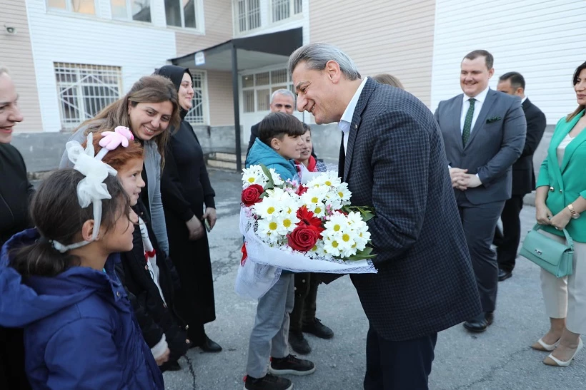 Bitlis Valisi Erol Karaömeroğlu ve eşi Filiz Karaömeroğlu, Mutki Yatılı Bölge Ortaokulu'nda öğrencilerle bir araya geldi