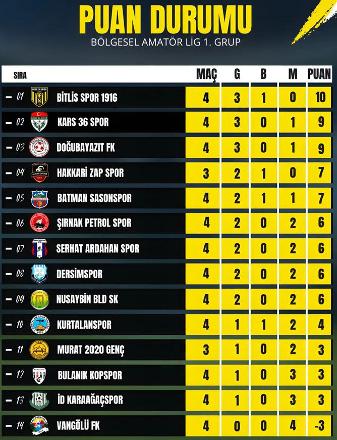 Bu sonuçla birlikte puanını 10’a yükselten Bitlis Spor, Bölgesel Amatör Lig’de liderlik koltuğuna oturdu. Takım, önümüzdeki hafta sahasında oynayacağı Murat 2020 Genç spor maçı hazırlıklarına moral ve motivasyonla başladı.